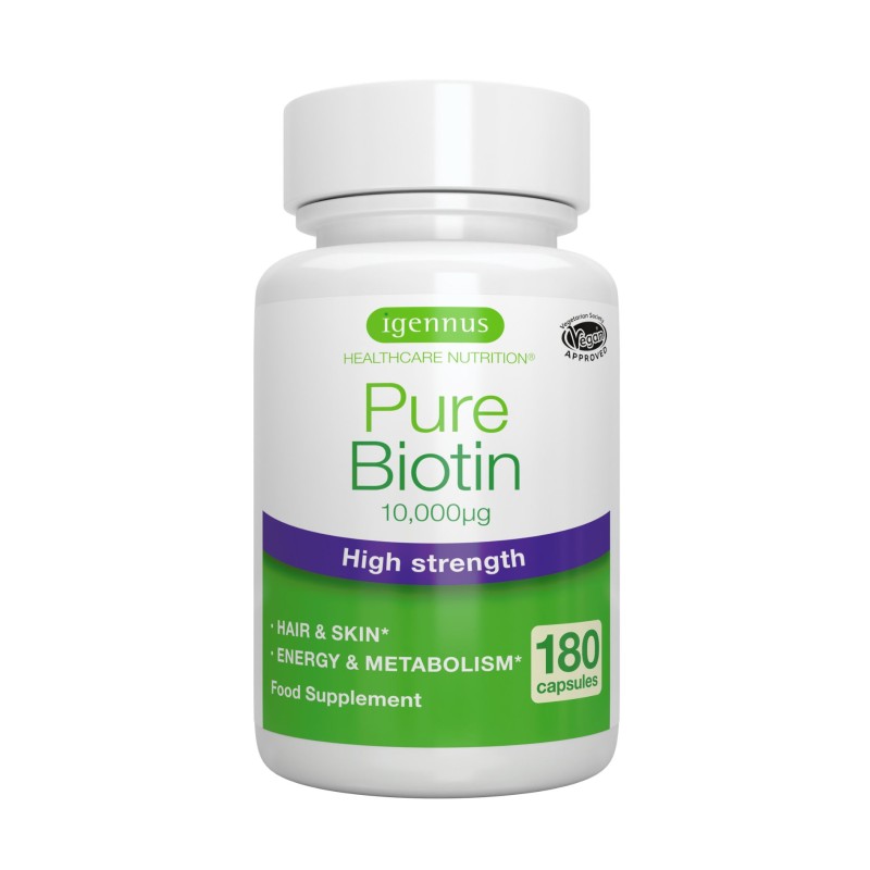 Biotyna jest witaminą niezbędną do produkcji keratyny, ważnego białka występującego w naszej skórze. Stymuluje wzrost silnych paznokci i włosów. Pomaga utrzymać prawidłowy stan błon śluzowych. Badania pokazują, że 10000 µg to dawka, która skutecznie wspiera zdrowie skóry, włosów i paznokci.