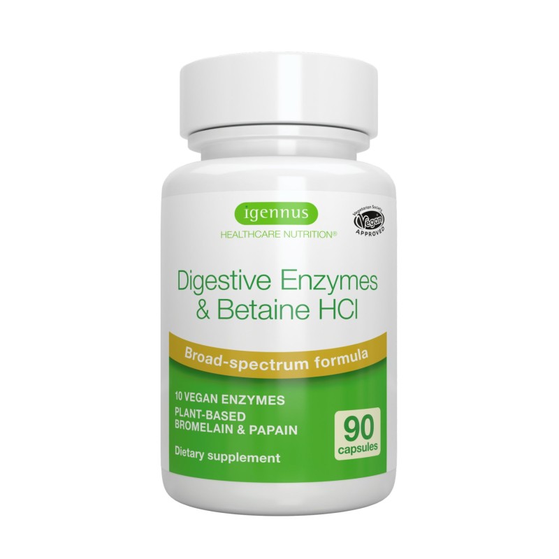 Optymalne trawienie pokarmów pomaga uwolnić więcej składników odżywczych z pożywienia. Kompleks enzymów trawiennych z betainą HCl ułatwia rozkład białek, tłuszczów i węglowodanów, a także wspiera trawienie trudniejszych do strawienia pokarmów, takich jak rozpuszczalny błonnik roślinny i laktoza.