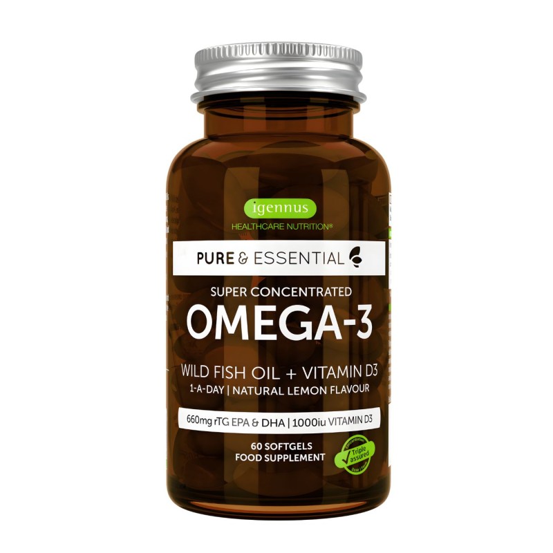Preparat OMEGA-3 z D3 należy do serii Pure Essentials i zawiera 80%-owy olej z dzikiej sardeli (anchovies). Każda kapsułka zawiera 440 mg kwasu eikozapentaenowego (EPA) i 220 mg kwasu dokozaheksaenowego (DHA) oraz 1000 IU witaminy D3. Kwasy omega-3 w OMEGA-3 z D3 mają postać re-estryfikowanego trójglicerydu (rTG), która jest formą gotową do użycia przez organizm. rTG pozwala szybciej, niż standardowy tran i olej z kryla, przywrócić odpowiedni poziom kwasów omega-3 w naszych komórkach.