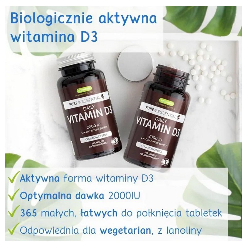 2000IU cholekalcyferolu z lanoliny, 365 tabletek, optymalna dzienna dawka witaminy D3 na cały rok